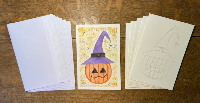 Pumpkin in Witch's Hat Greeting Cards